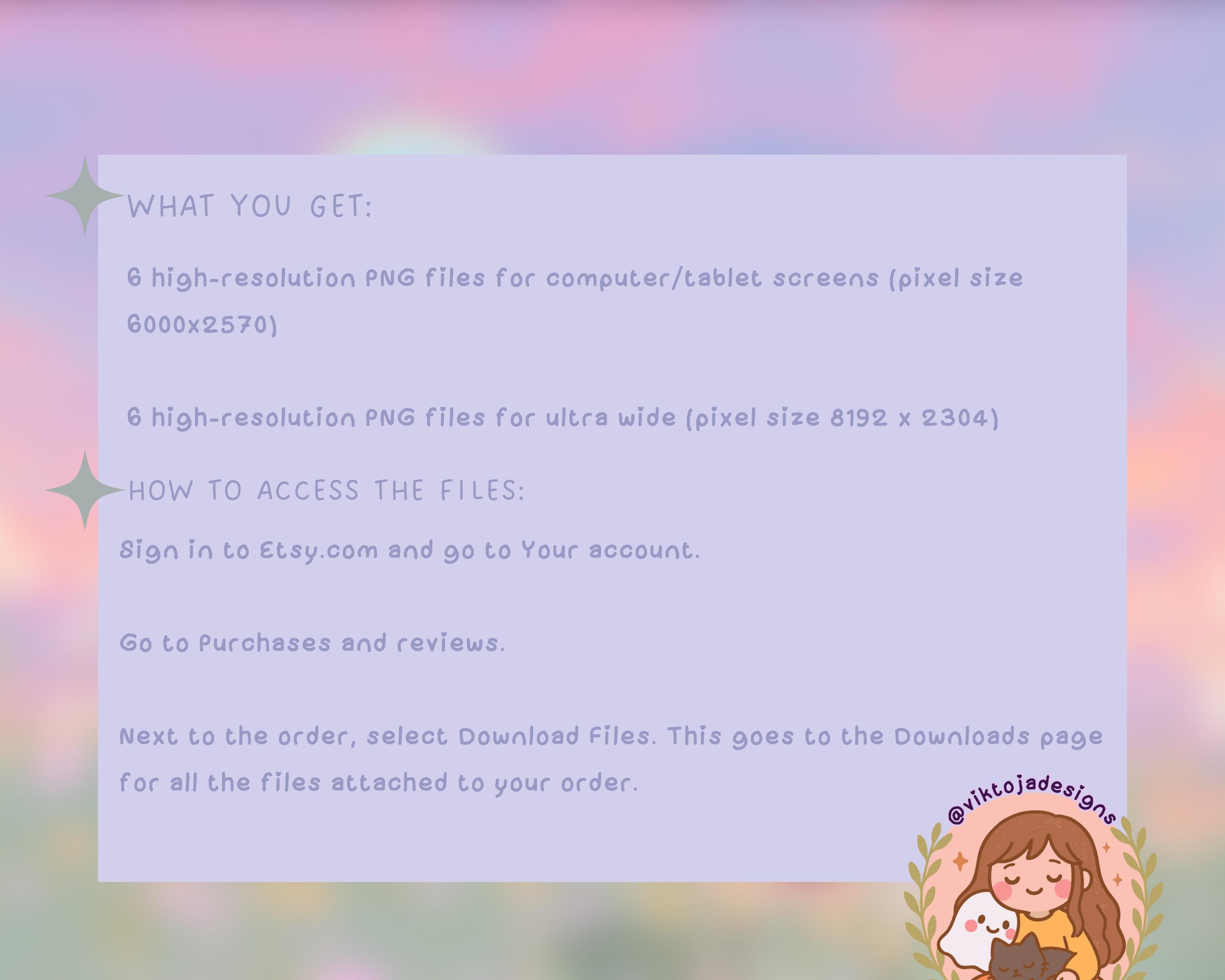 Once you’ve made your purchase, it’s super easy to download all 12 high-res wallpapers 📥. Just sign into your Etsy account 🛒, go to “Purchases and Reviews,” and hit “Download Files” next to your order. Your new screen art will be ready to enjoy in no time! 🎨🖥️