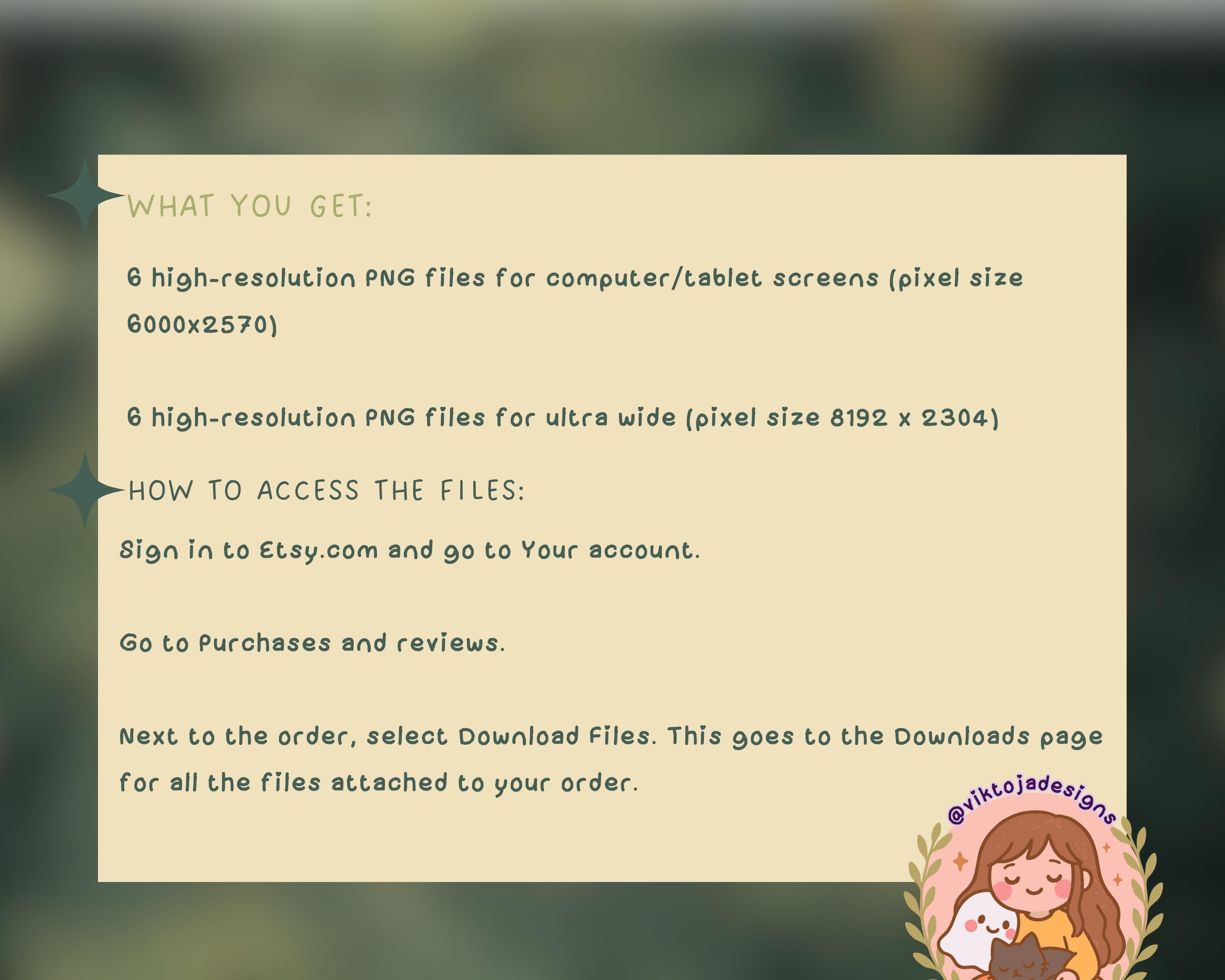 Once you’ve made your purchase, it’s super easy to download all 12 high-res wallpapers 📥. Just sign into your Etsy account 🛒, go to “Purchases and Reviews,” and hit “Download Files” next to your order. Your new screen art will be ready to enjoy in no time! 🎨🖥️