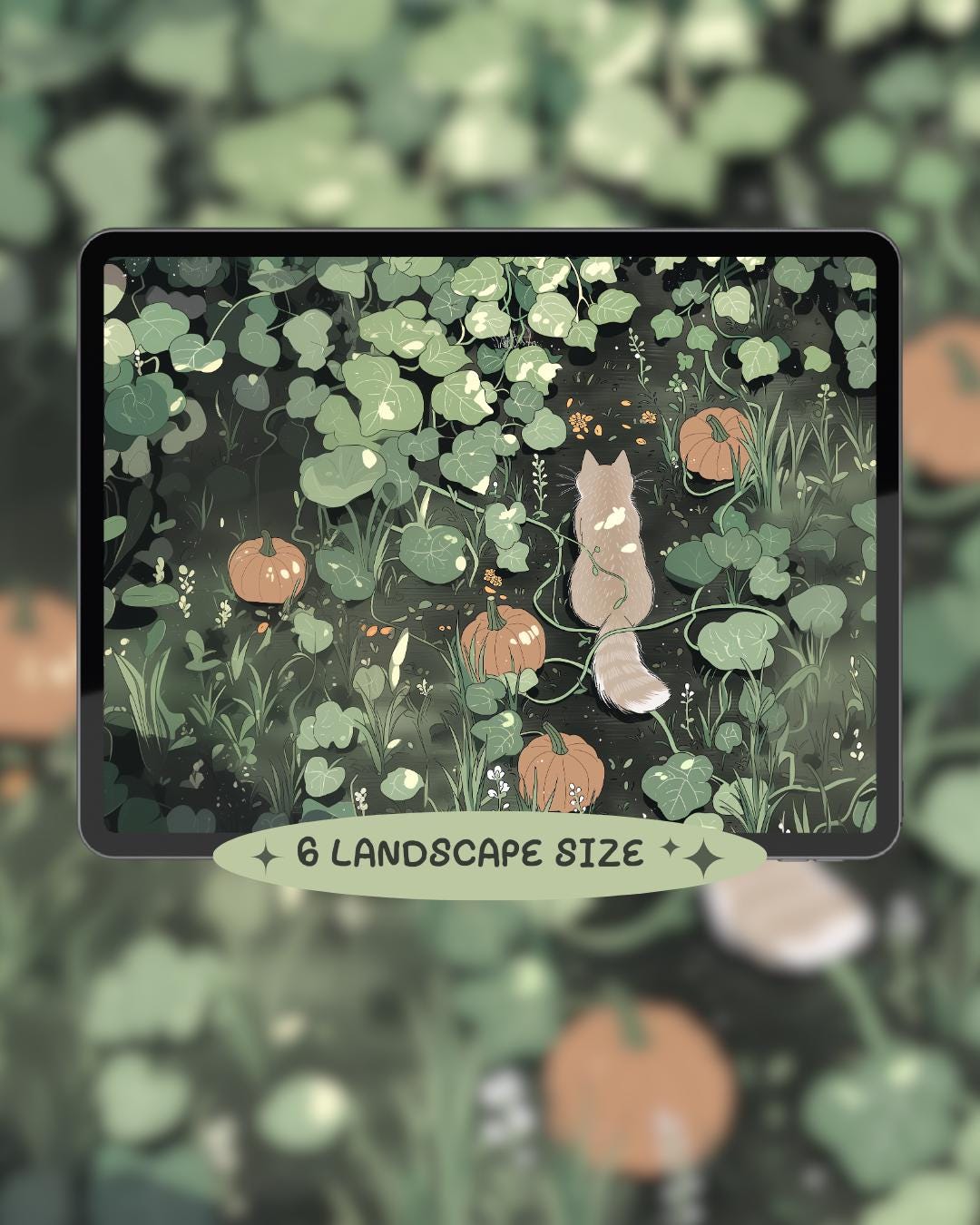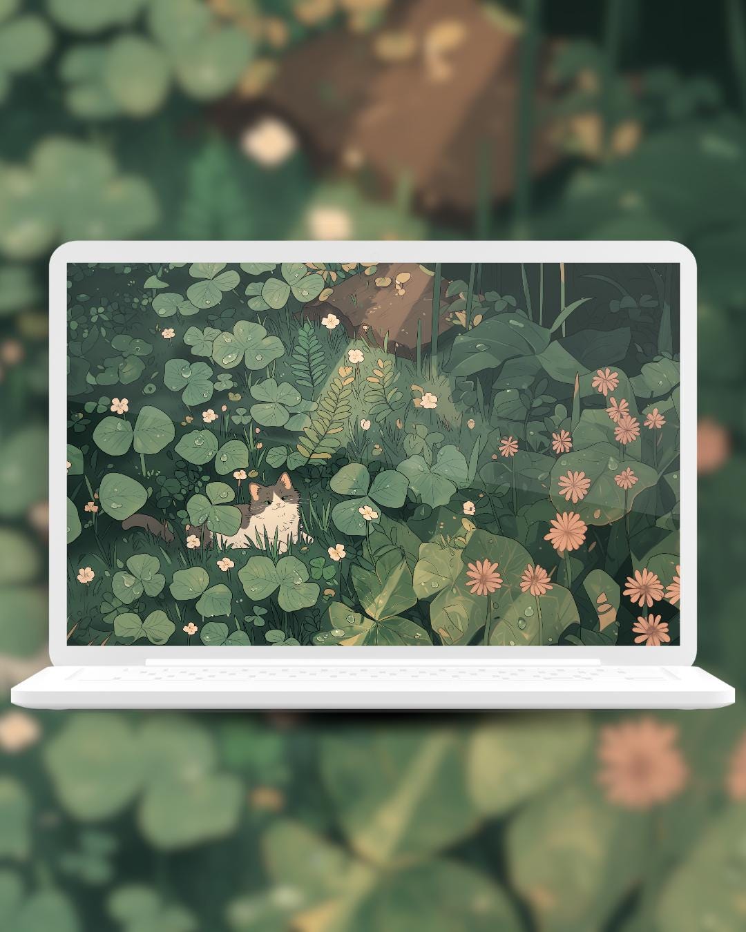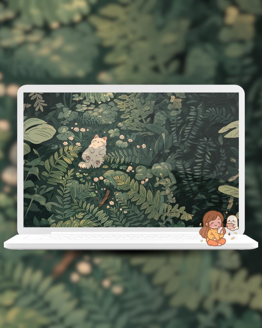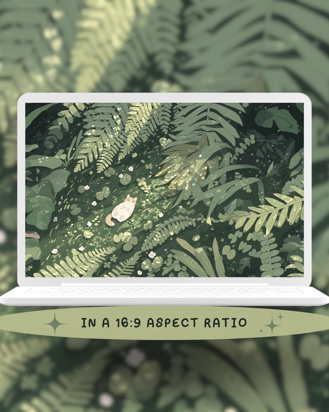 Top down Cats Wallpaper Set: greens and nature (Digital Download)