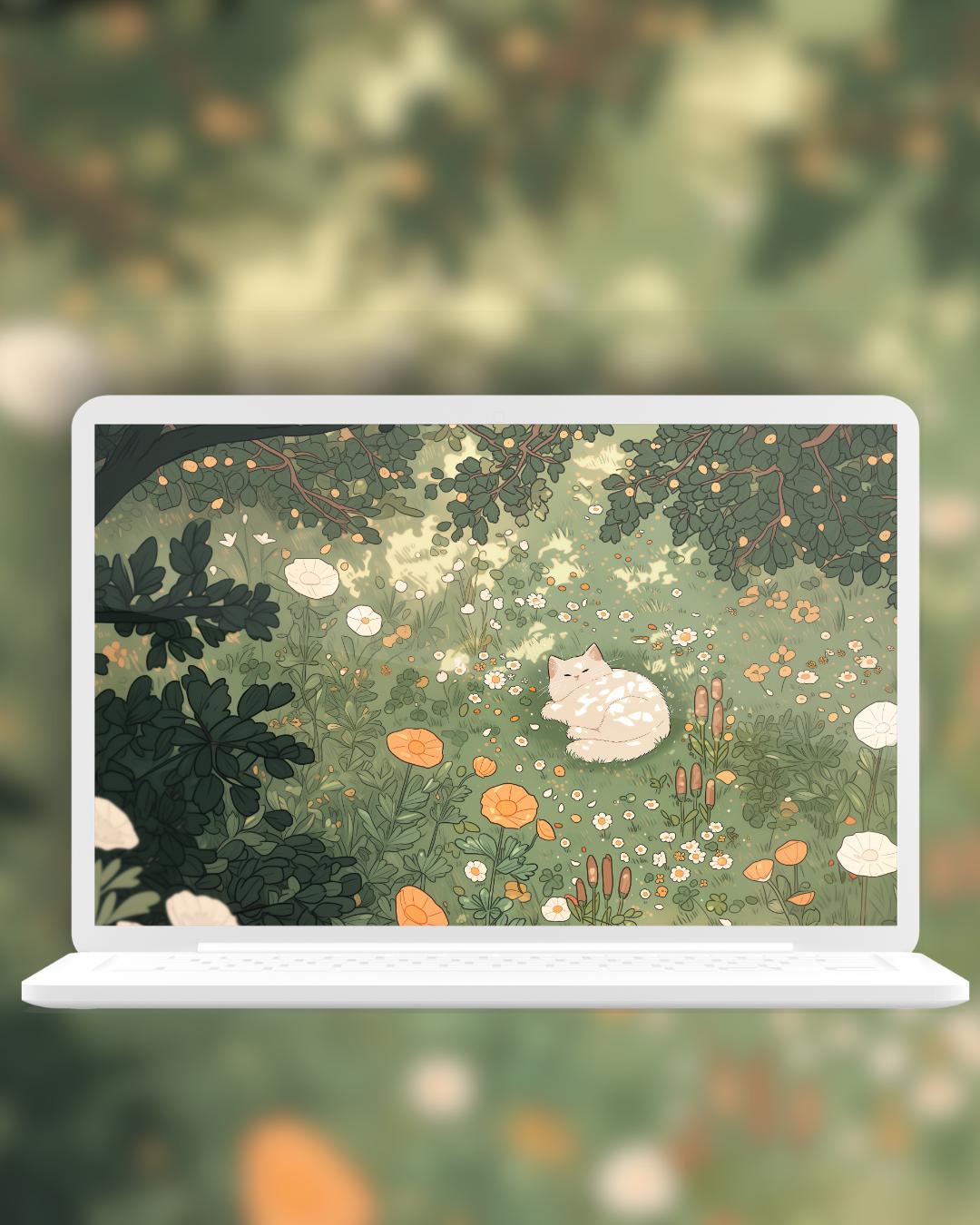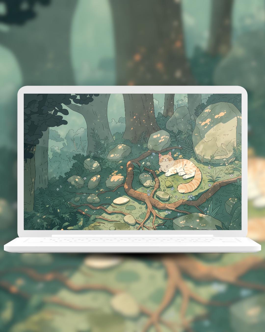 Bring a touch of magic to your devices with this set of 12 cozy wallpapers! Featuring cute cats in cozy settings, these high-res JPG files will fit perfectly on your phone or computer/tablet screens.