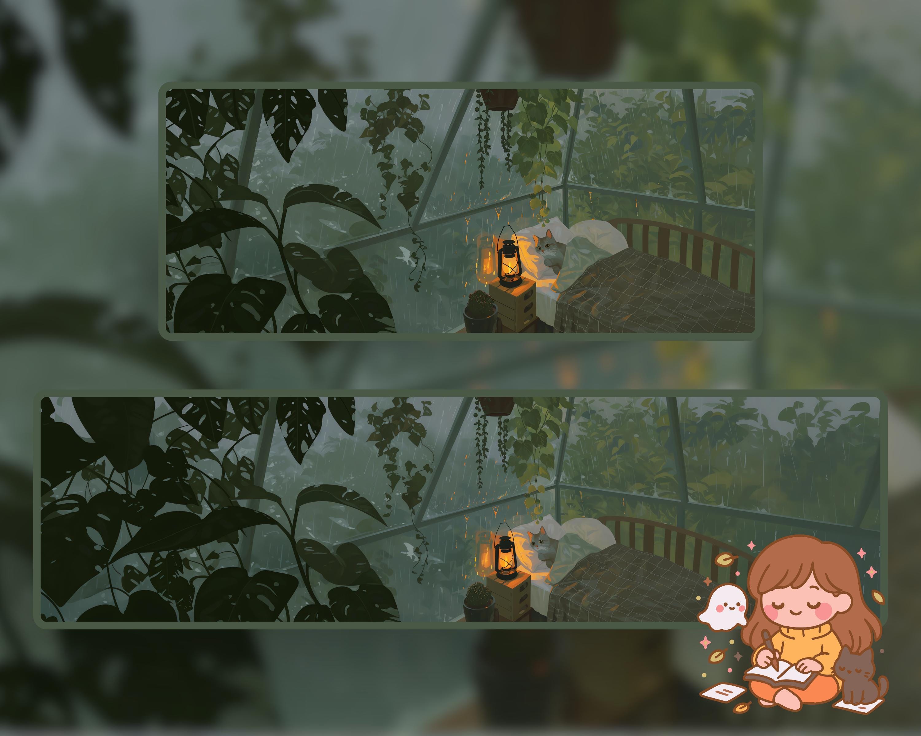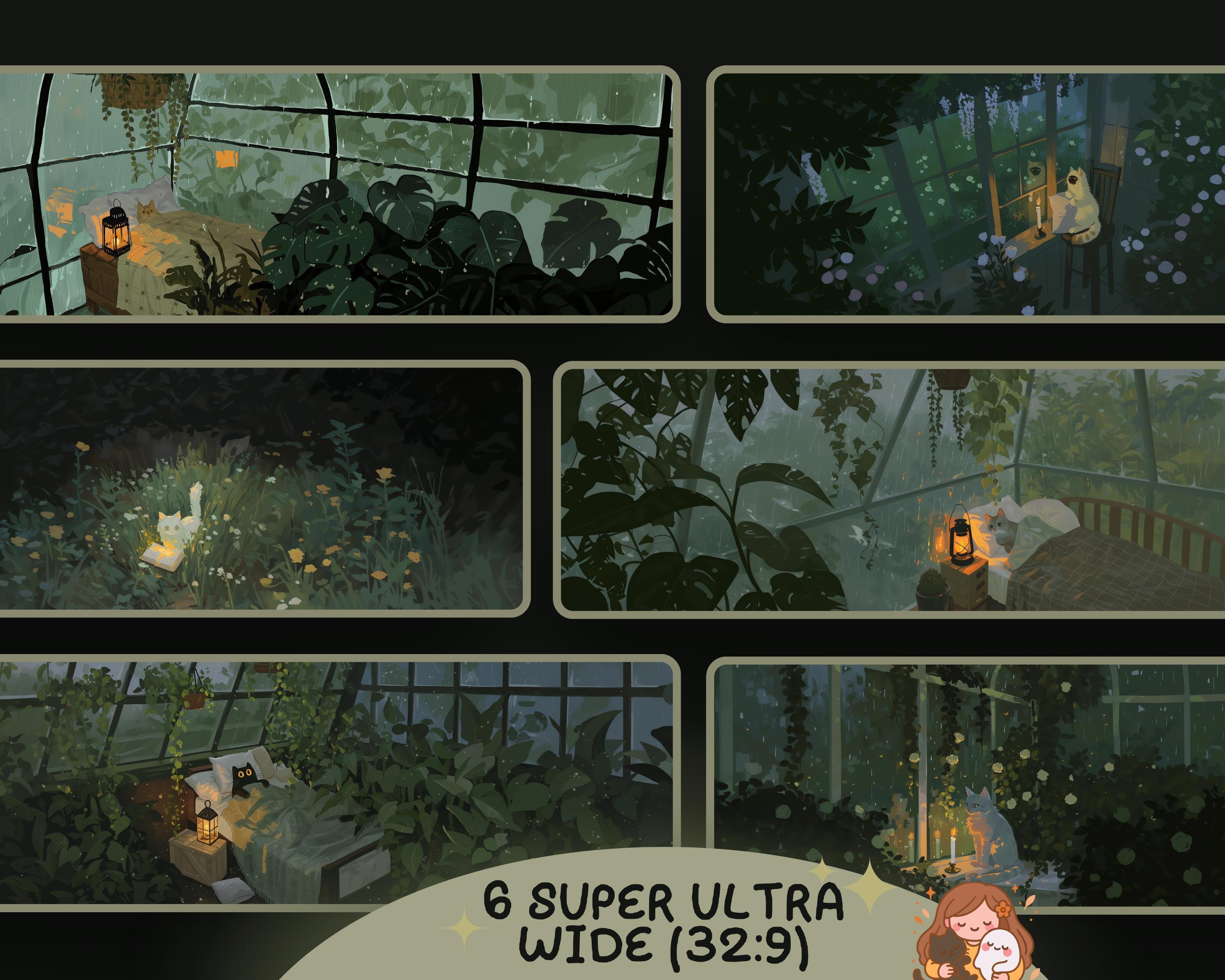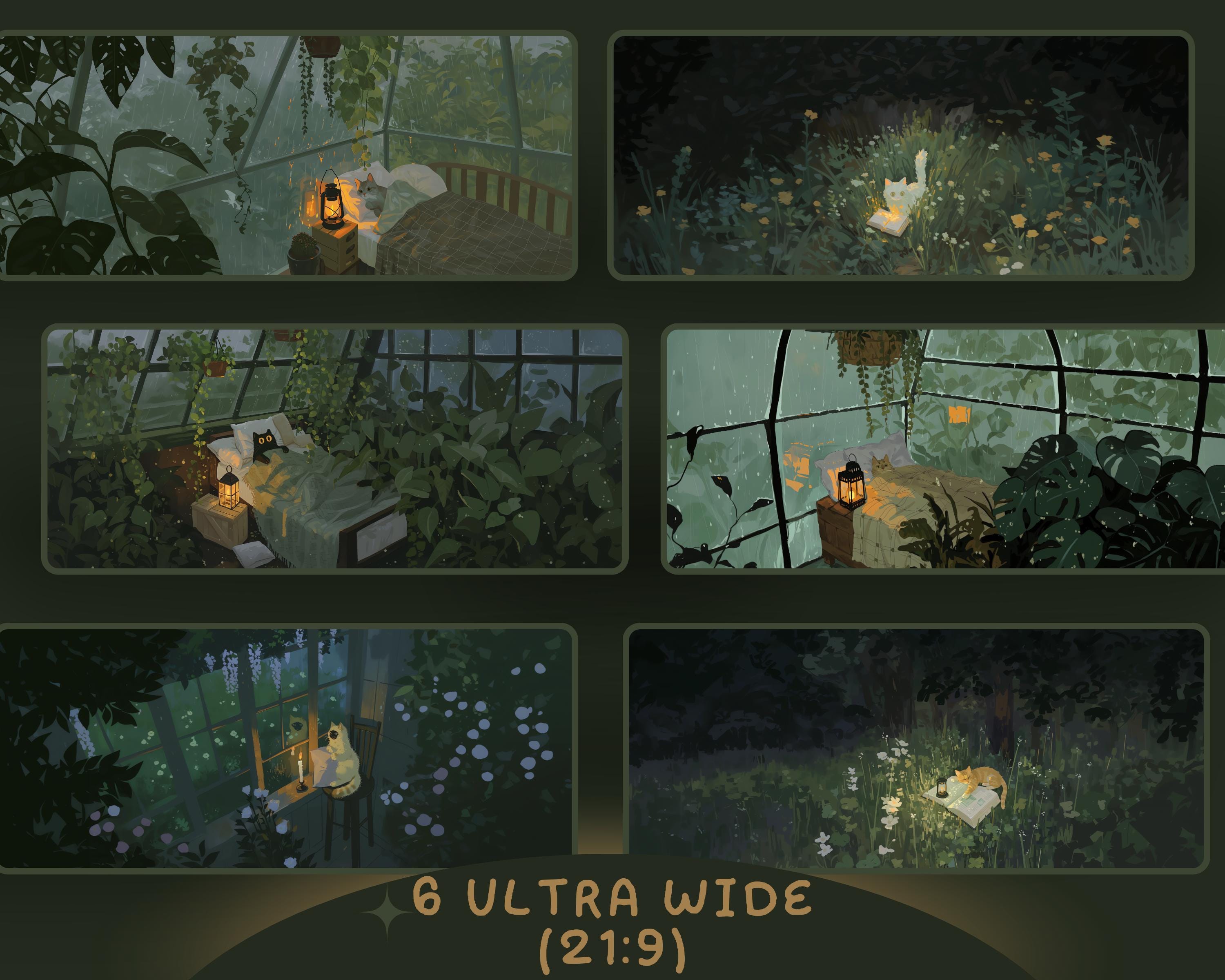 Rainy Day Cats Desktop Wallpaper: nature and greens 4K (Digital Download)