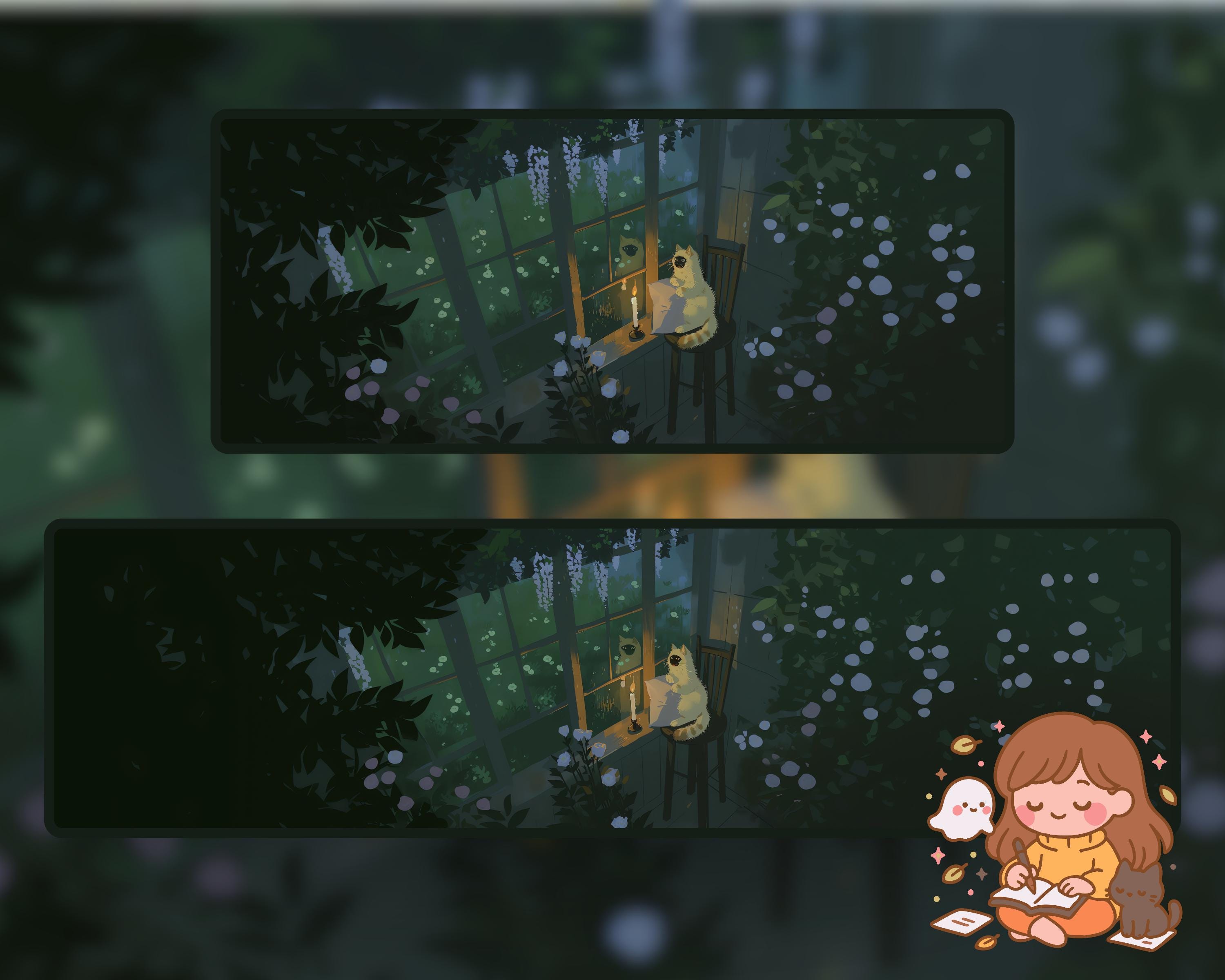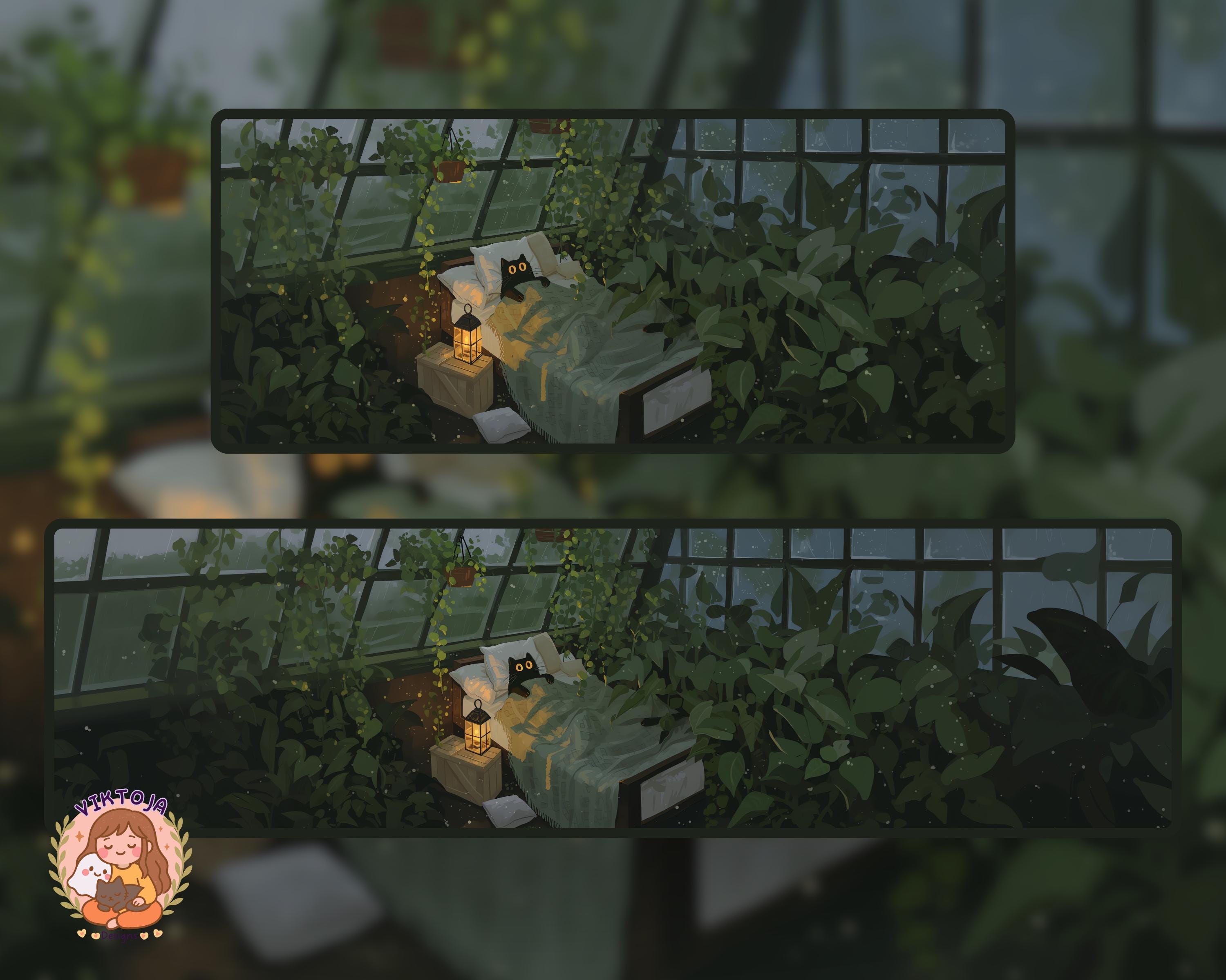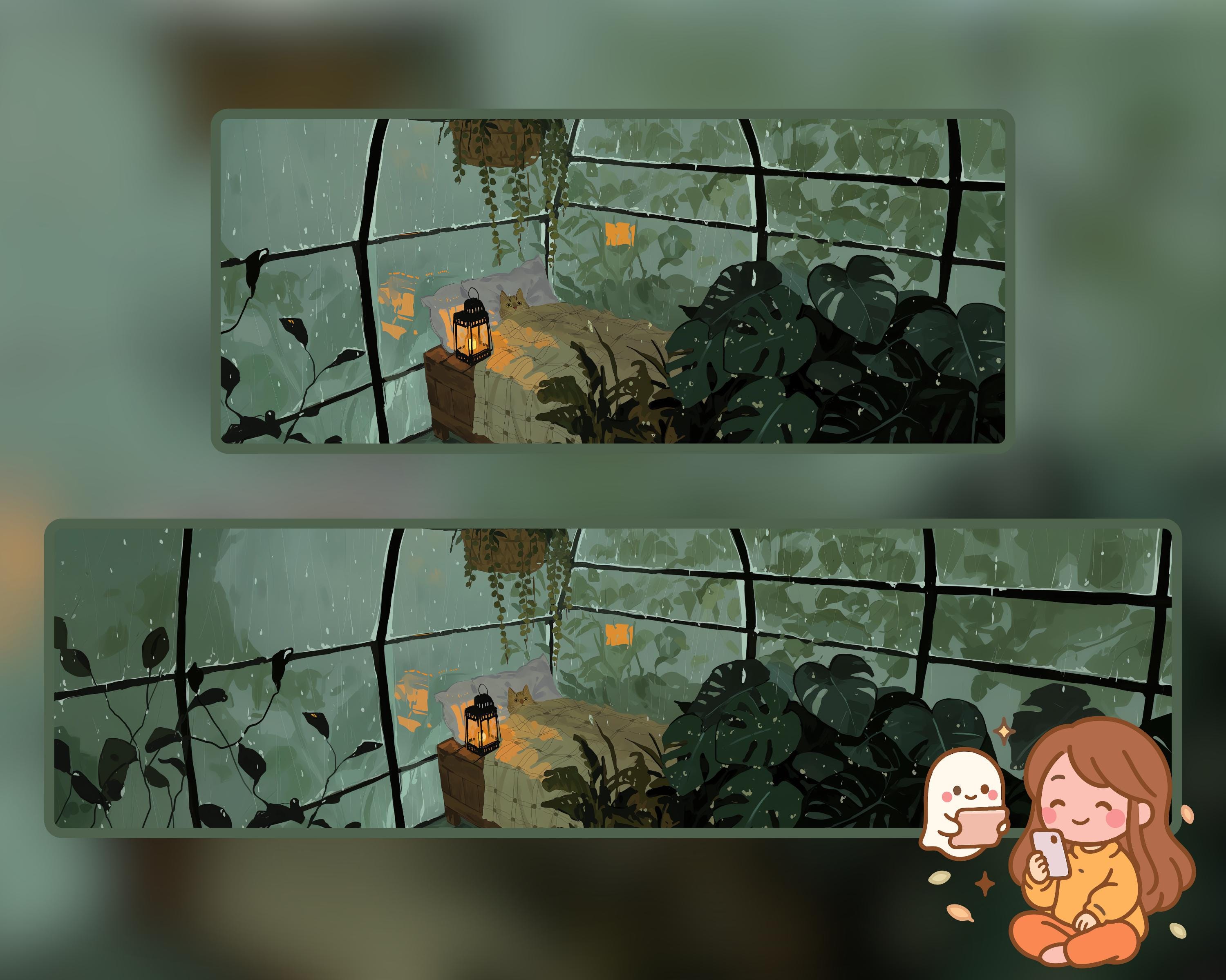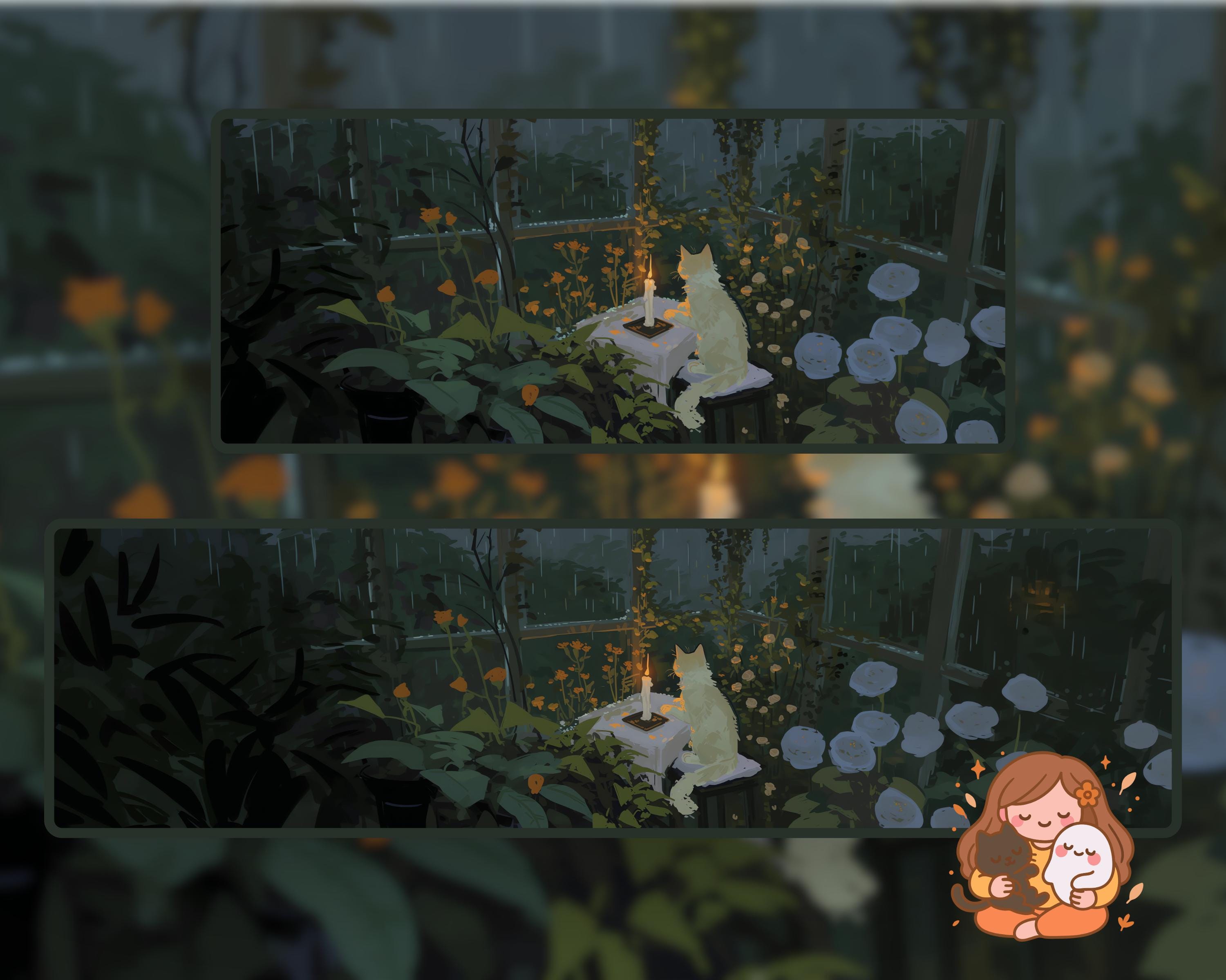 Rainy Day Cats Desktop Wallpaper: nature and greens 4K (Digital Download)