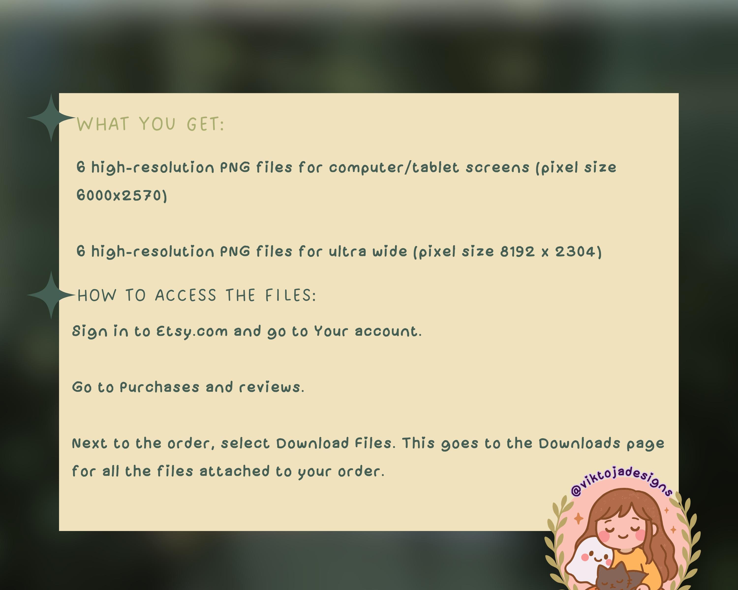 Once you’ve made your purchase, it’s super easy to download all 12 high-res wallpapers 📥. Just sign into your Etsy account 🛒, go to “Purchases and Reviews,” and hit “Download Files” next to your order. Your new screen art will be ready to enjoy in no time! 🎨🖥️
