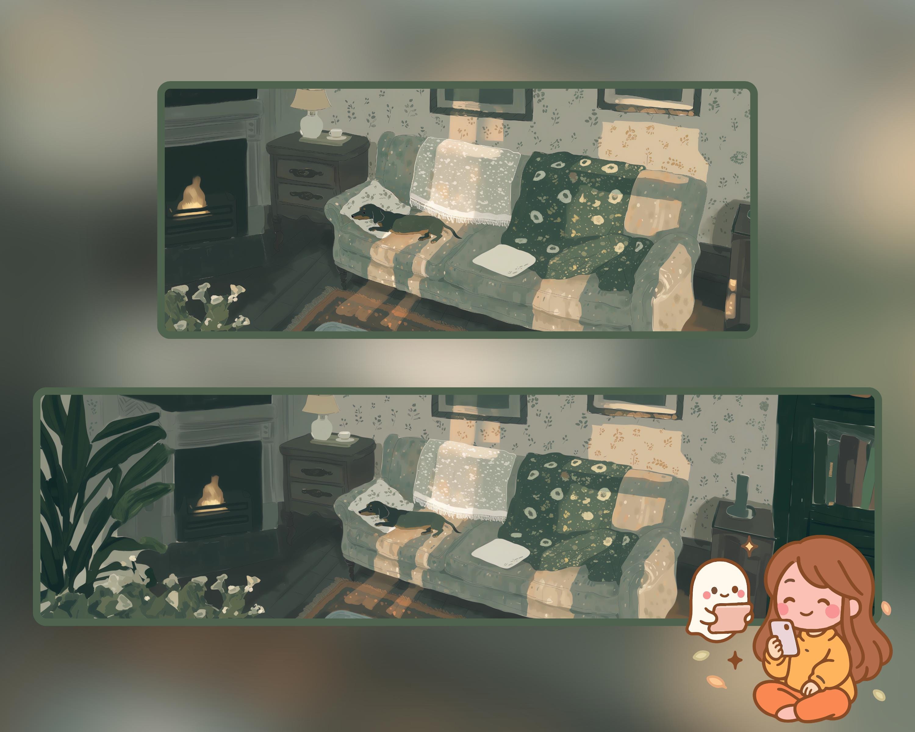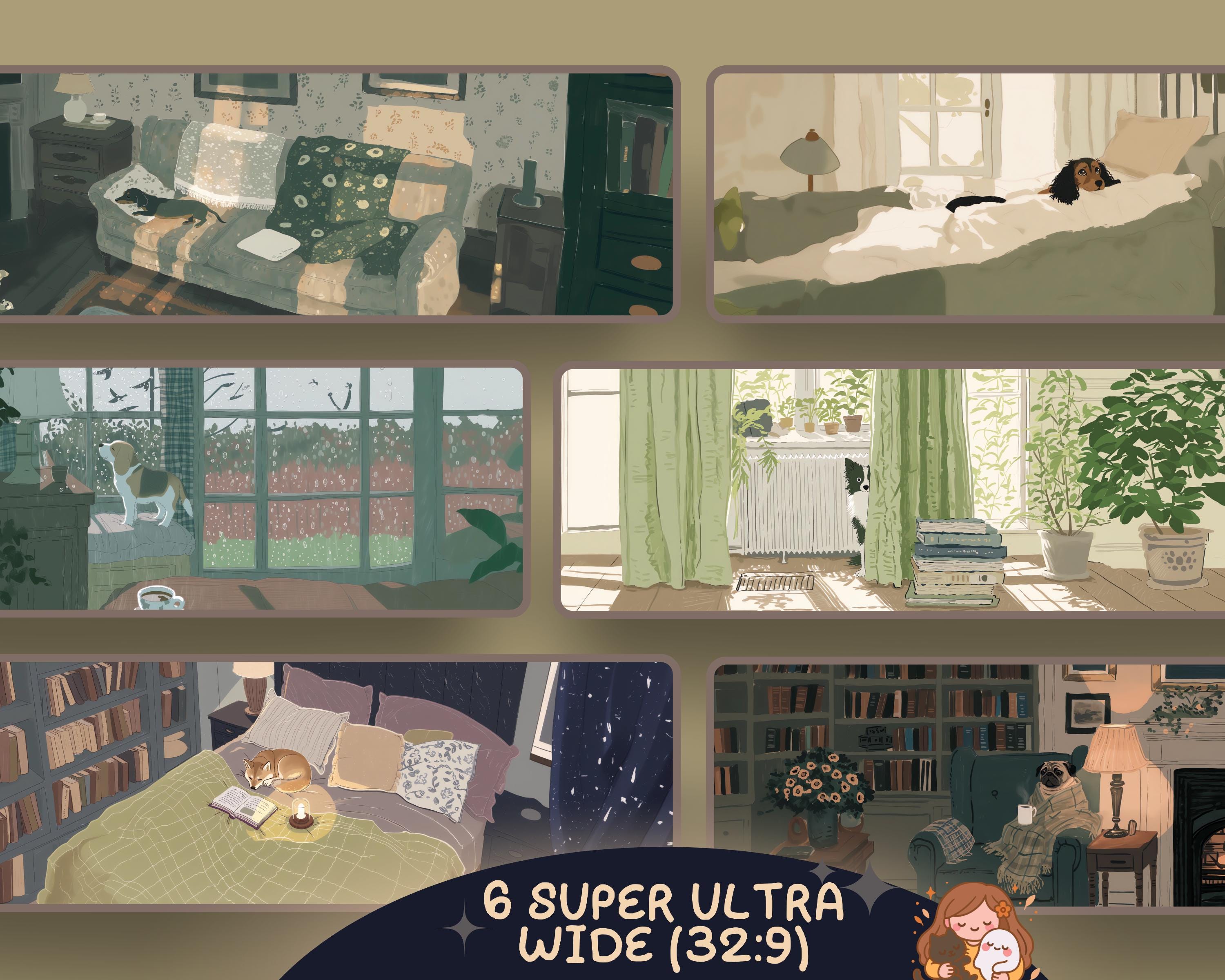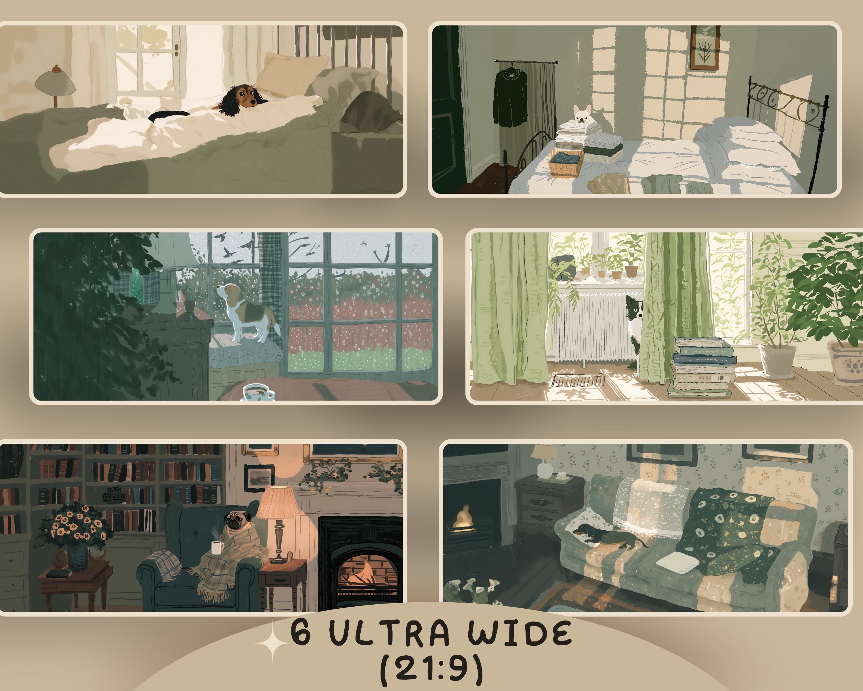 Cozy Dog Wallpapers: 12 Ultra-Wide Digital Art (Digital Download)