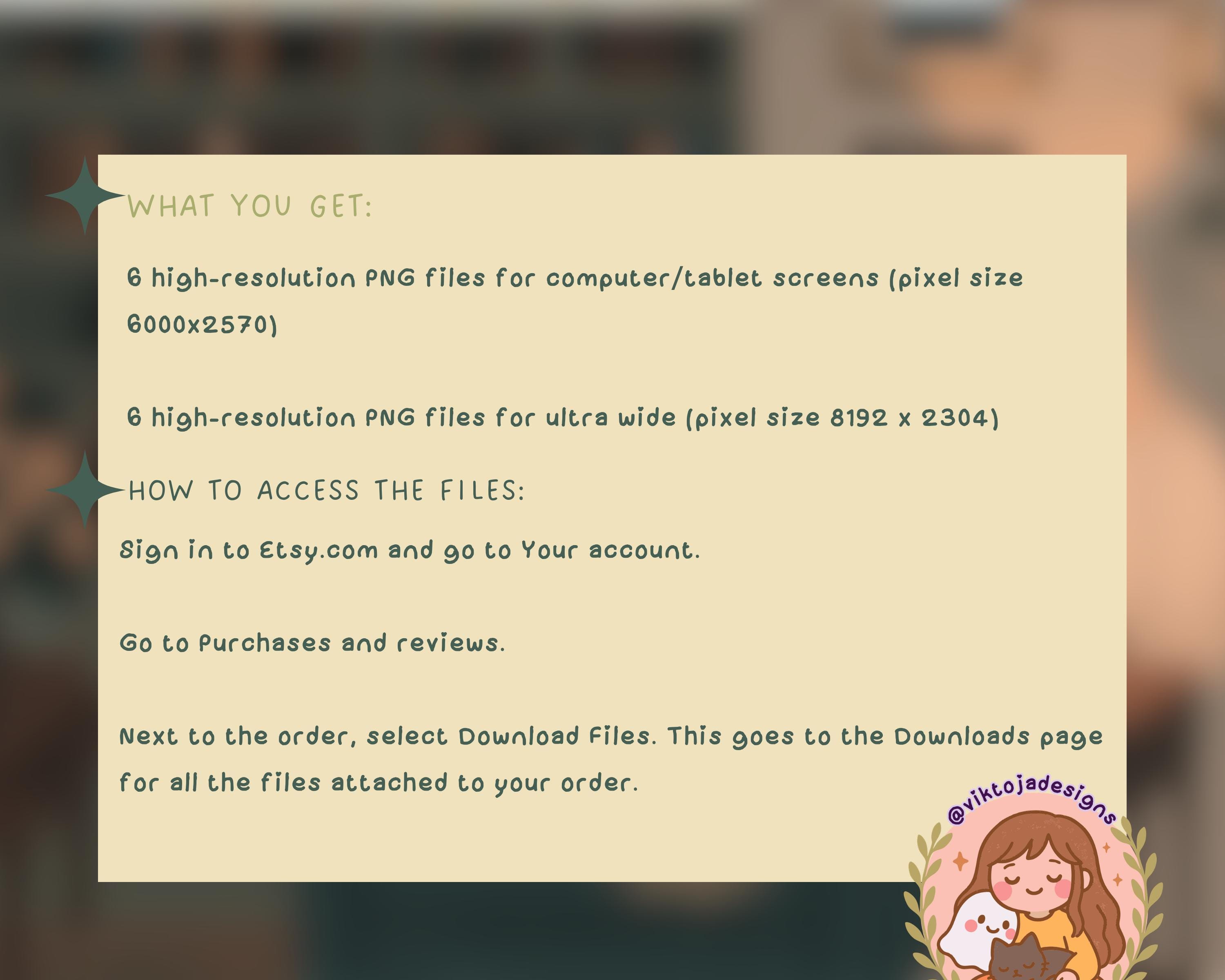 Once you’ve made your purchase, it’s super easy to download all 12 high-res wallpapers 📥. Just sign into your Etsy account 🛒, go to “Purchases and Reviews,” and hit “Download Files” next to your order. Your new screen art will be ready to enjoy in no time! 🎨🖥️