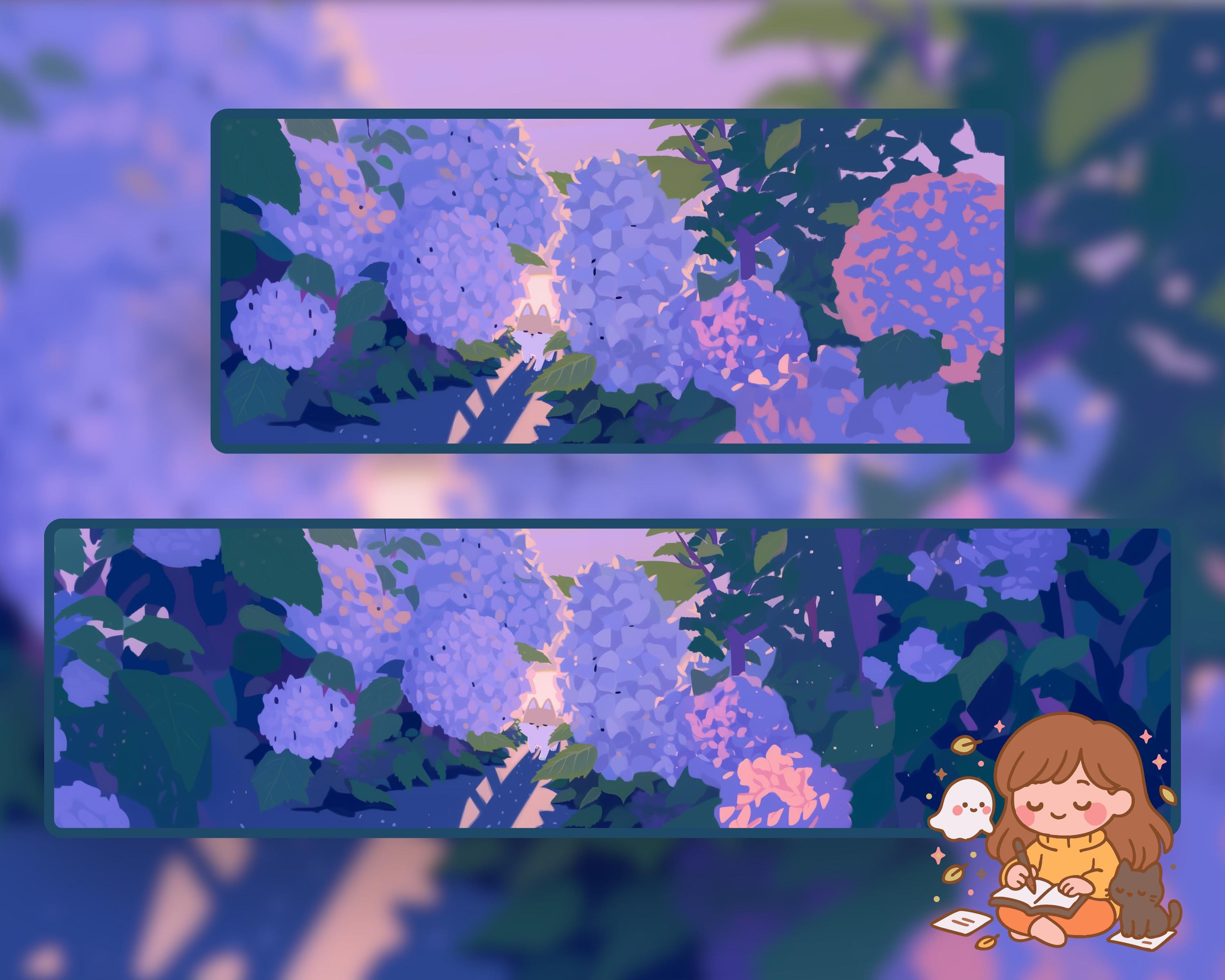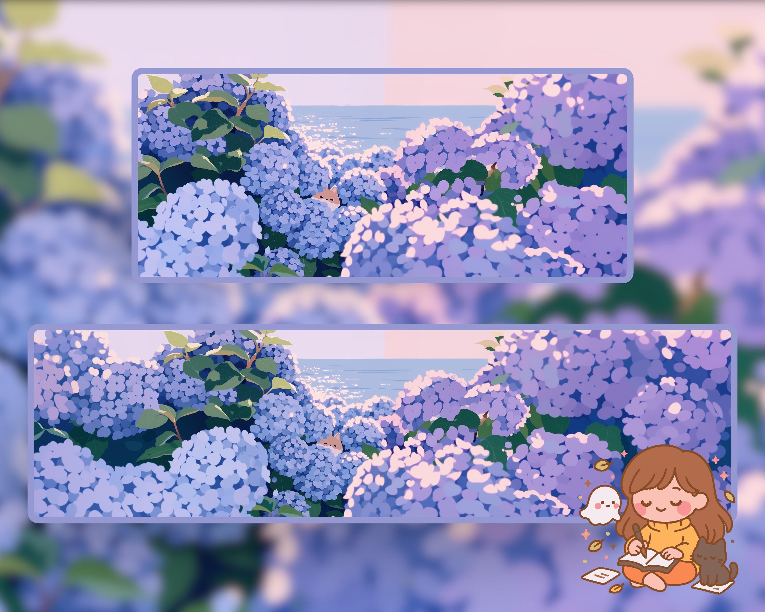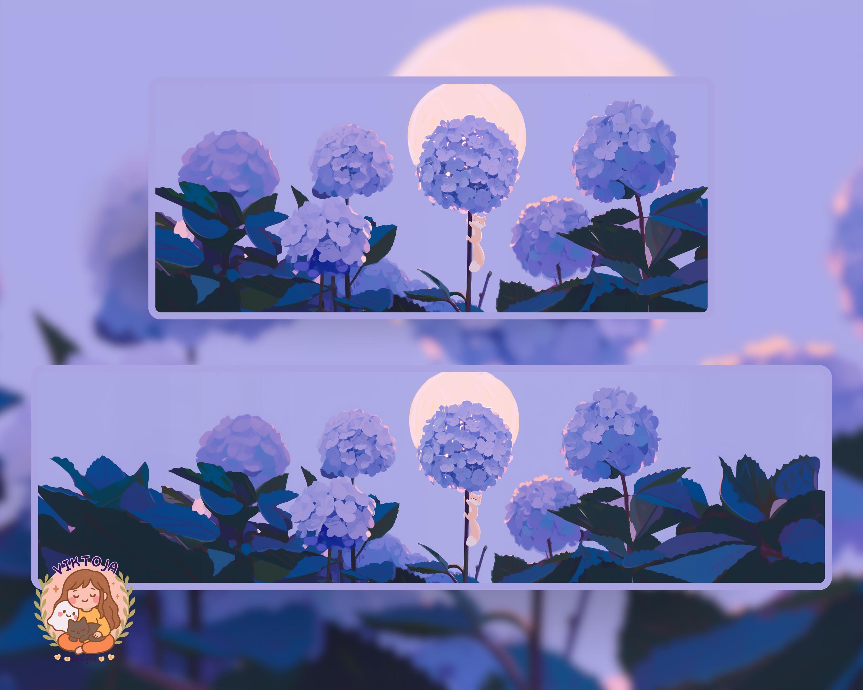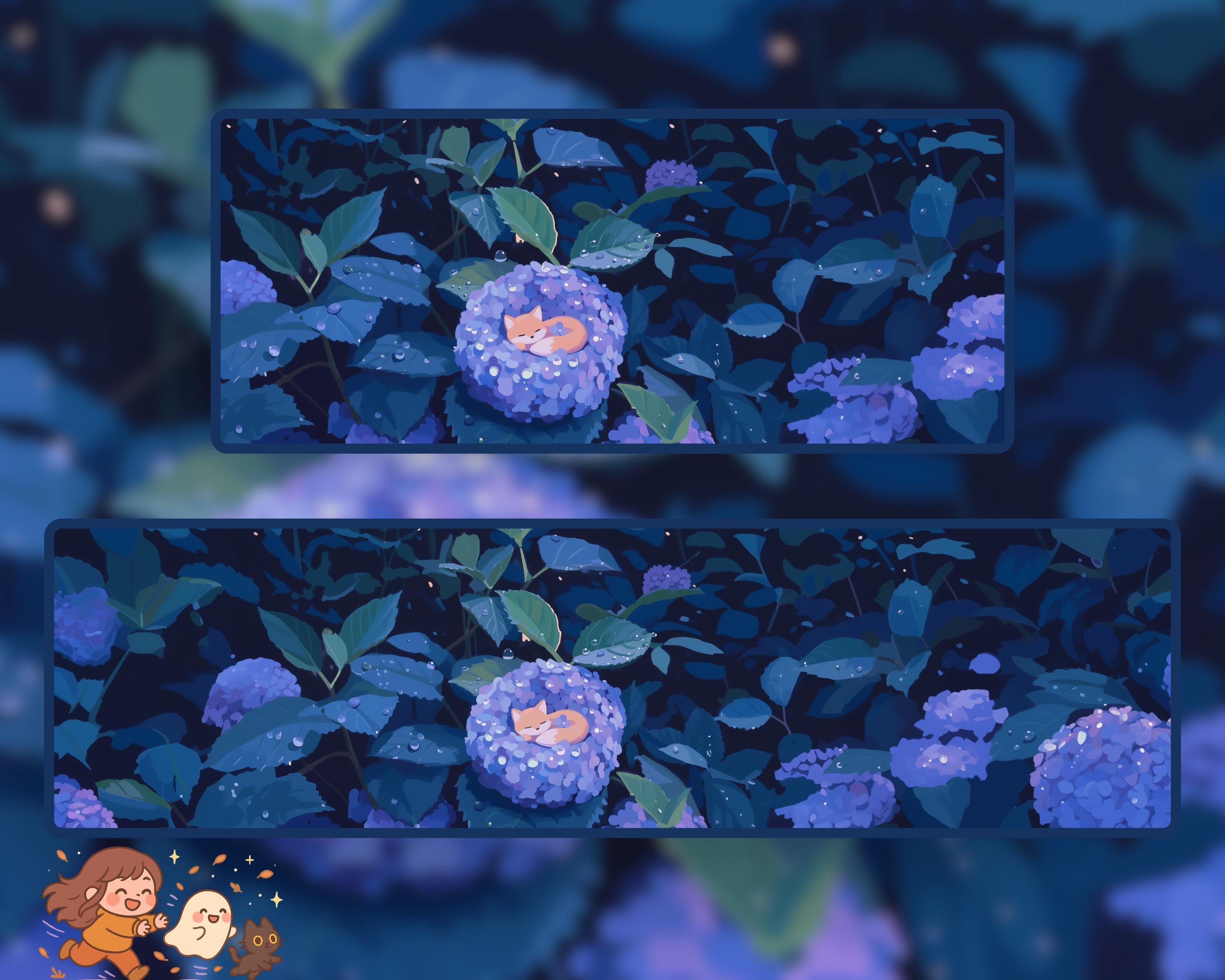blue hydrangea fox kawaii Ultrawide Wallpaper Set Desk Setup Desktop for 21:9 32x9