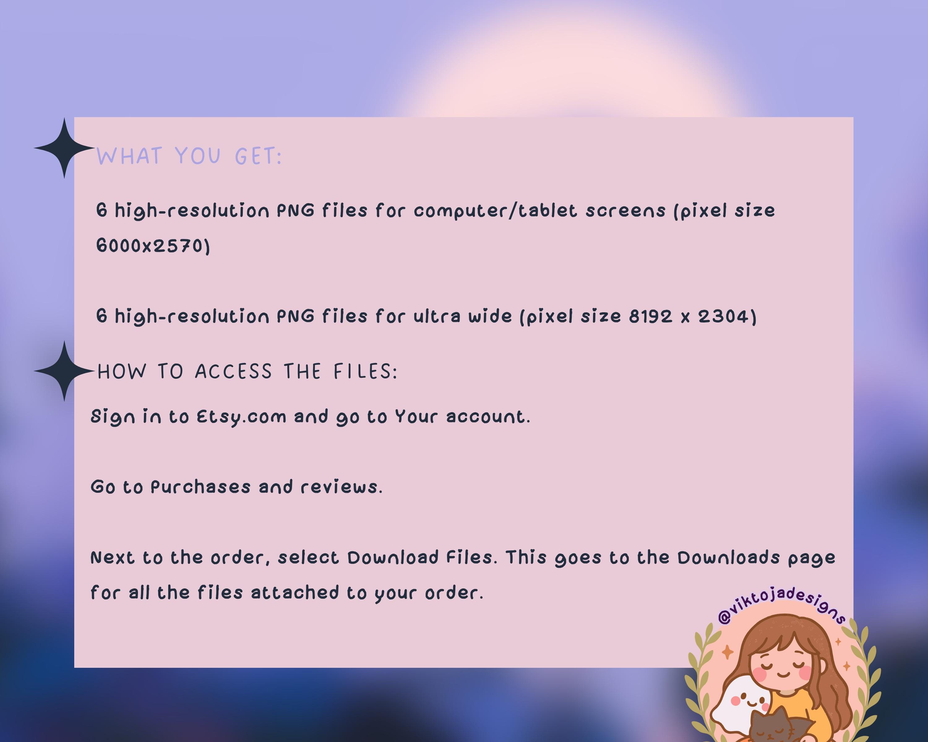 Once you’ve made your purchase, it’s super easy to download all 12 high-res wallpapers 📥. Just sign into your Etsy account 🛒, go to “Purchases and Reviews,” and hit “Download Files” next to your order. Your new screen art will be ready to enjoy in no time! 🎨🖥️