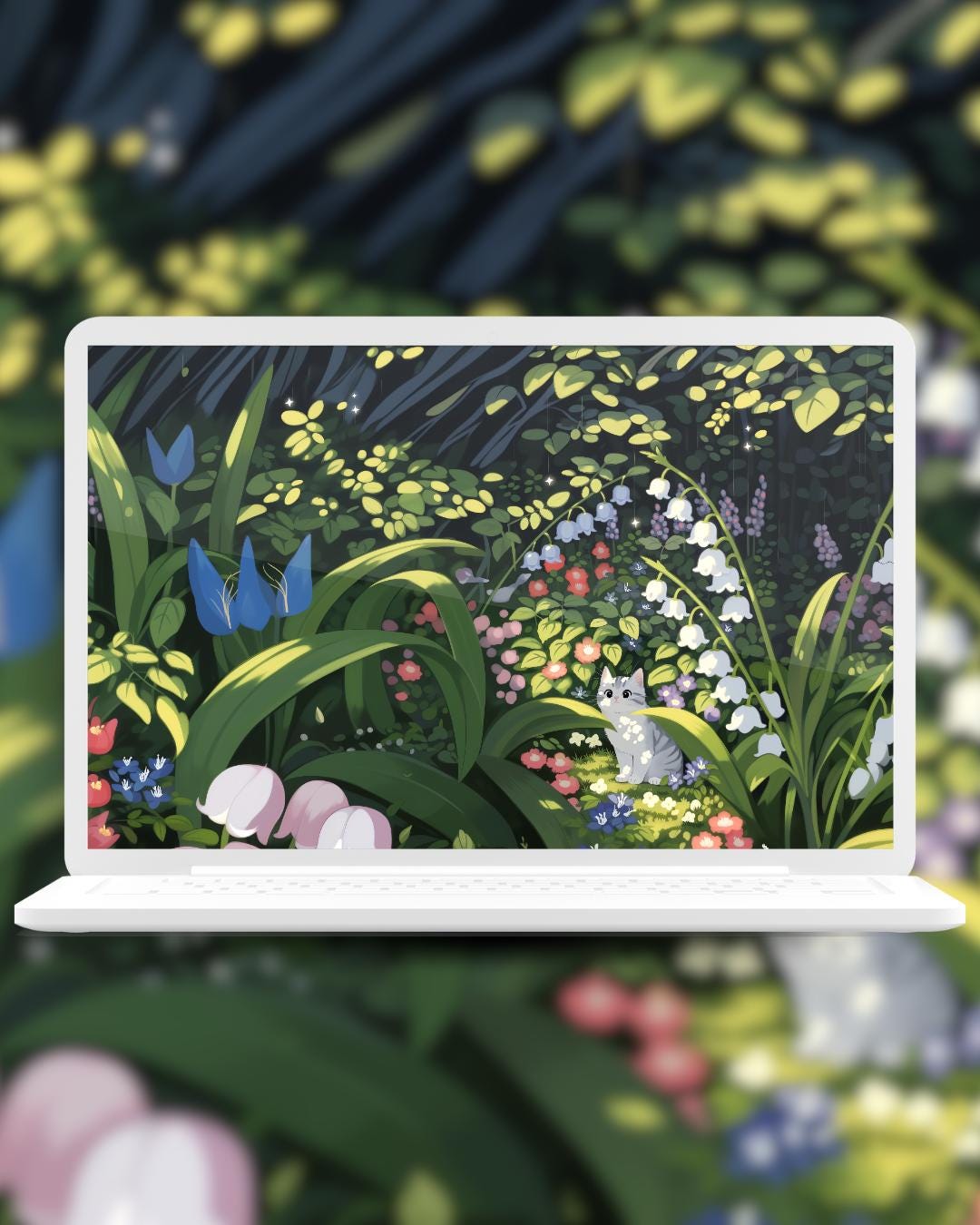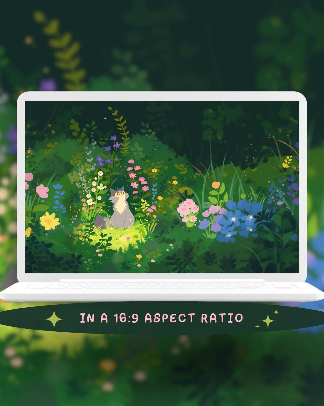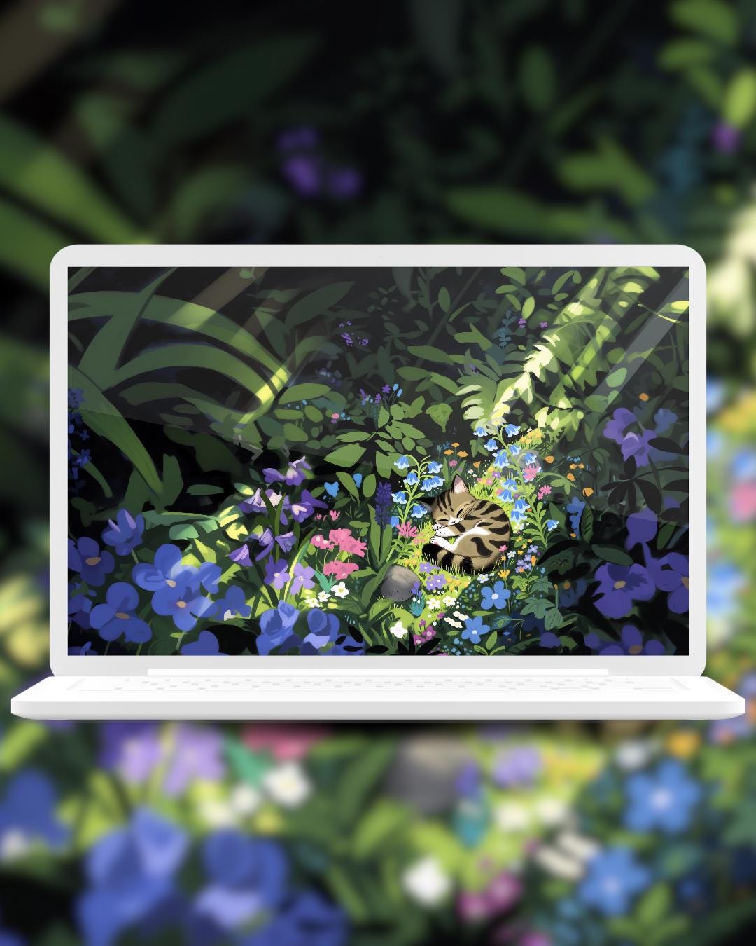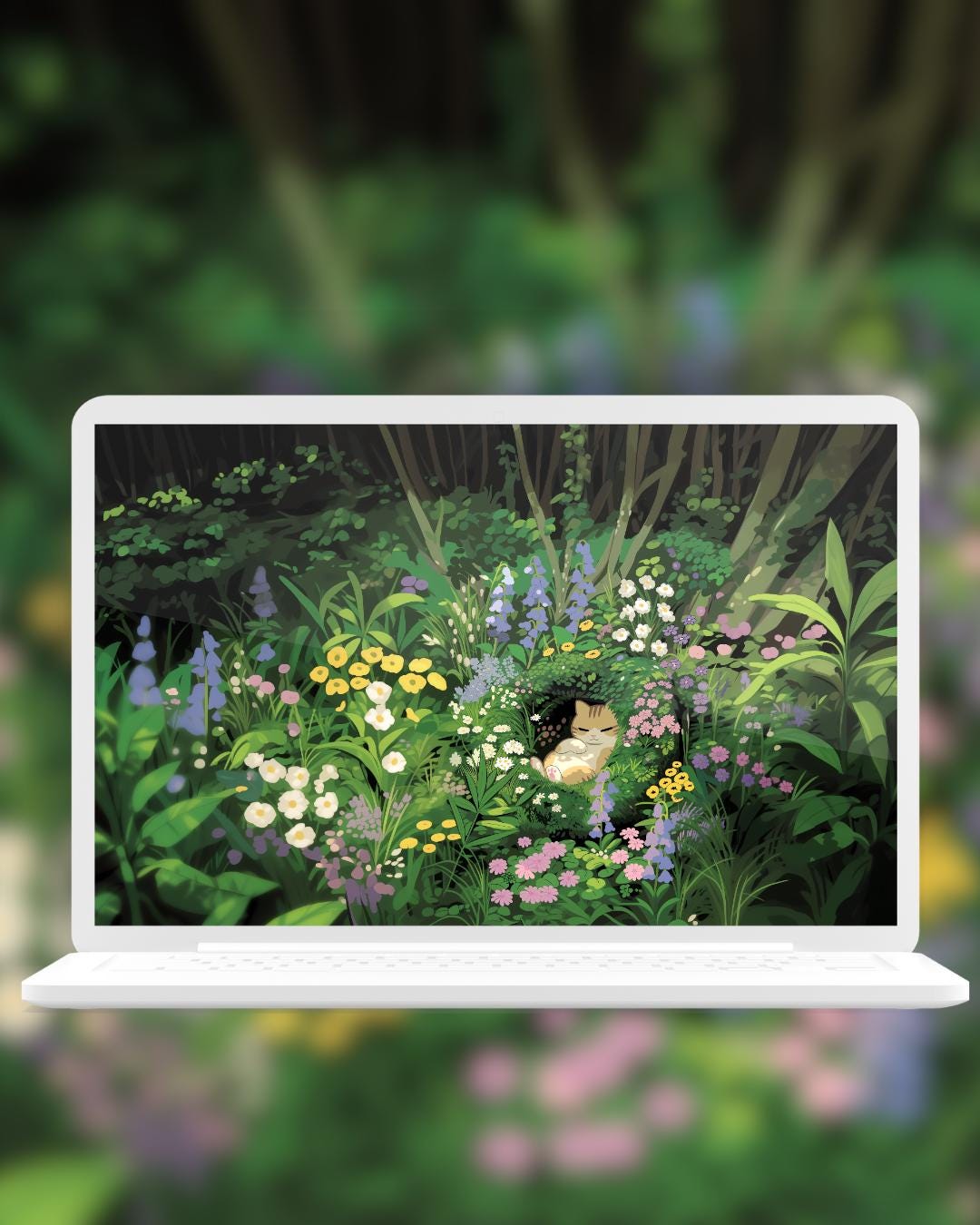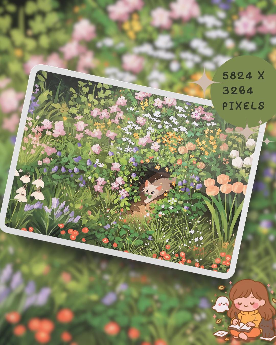 Spring Flower cats Wallpaper: colorful Desktop & Phone Backgrounds (Digital Download)