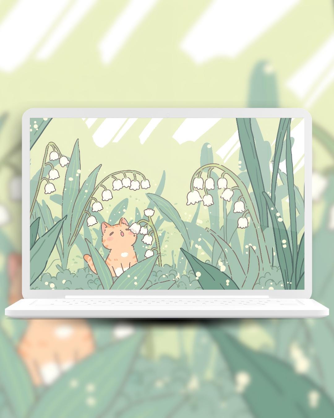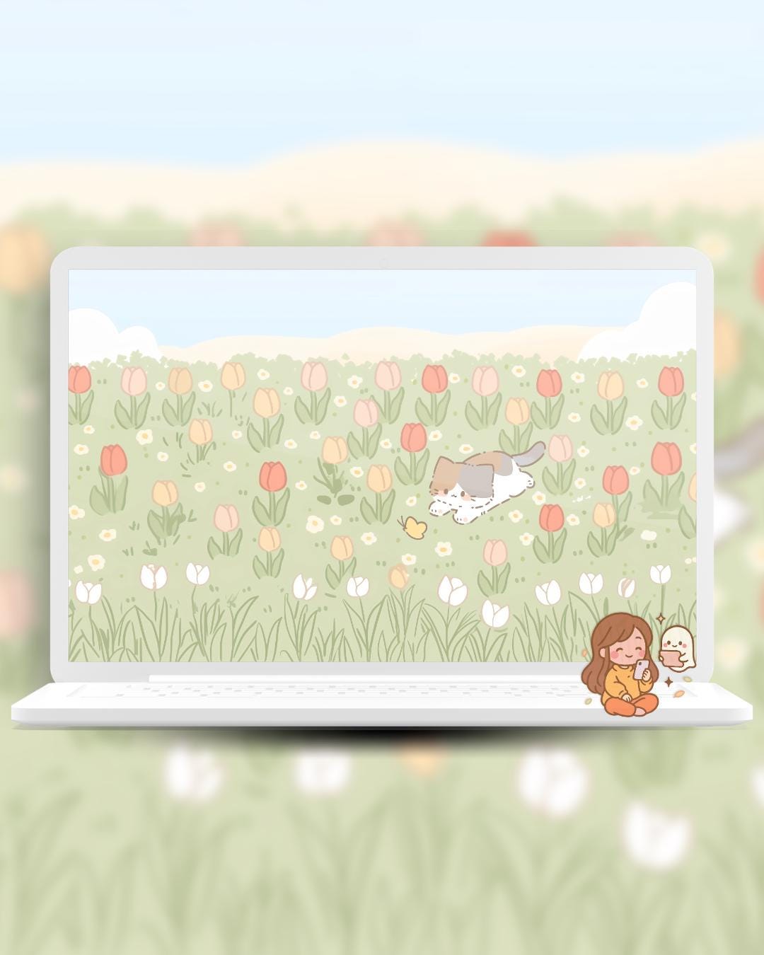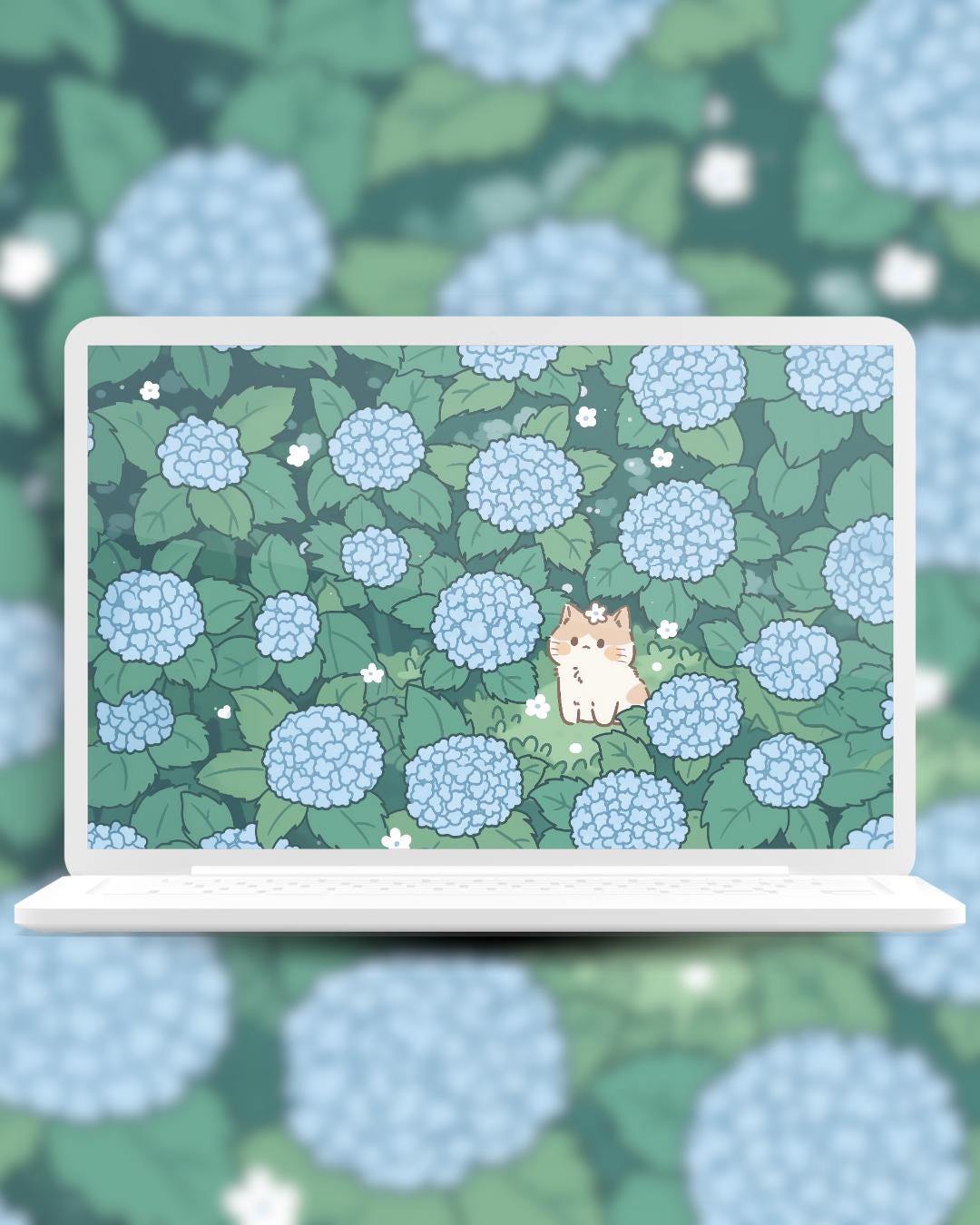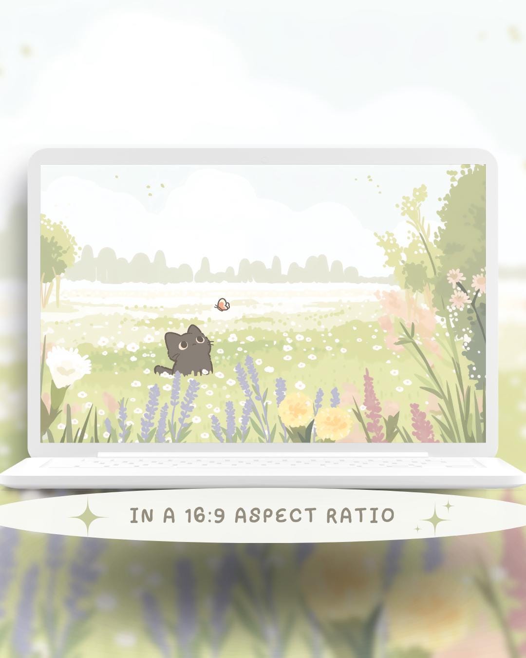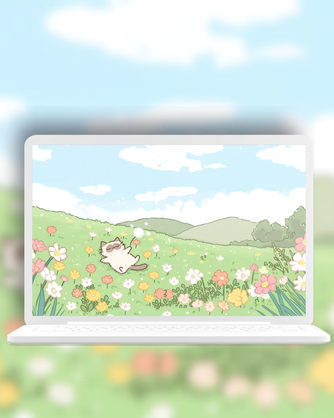 Kawaii spring Flower cats Wallpaper: Pastel Pink Desktop & Phone Backgrounds (Digital Download)