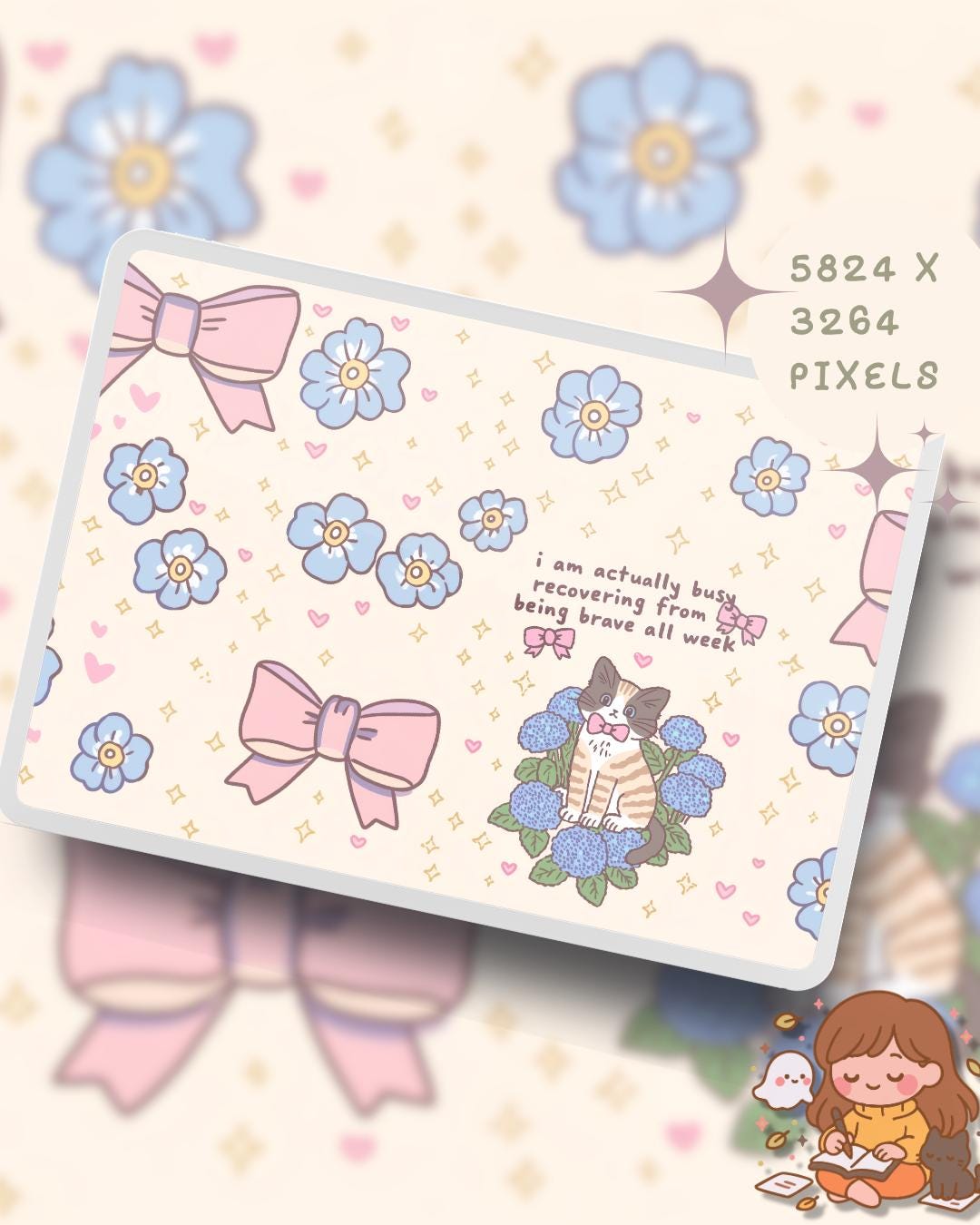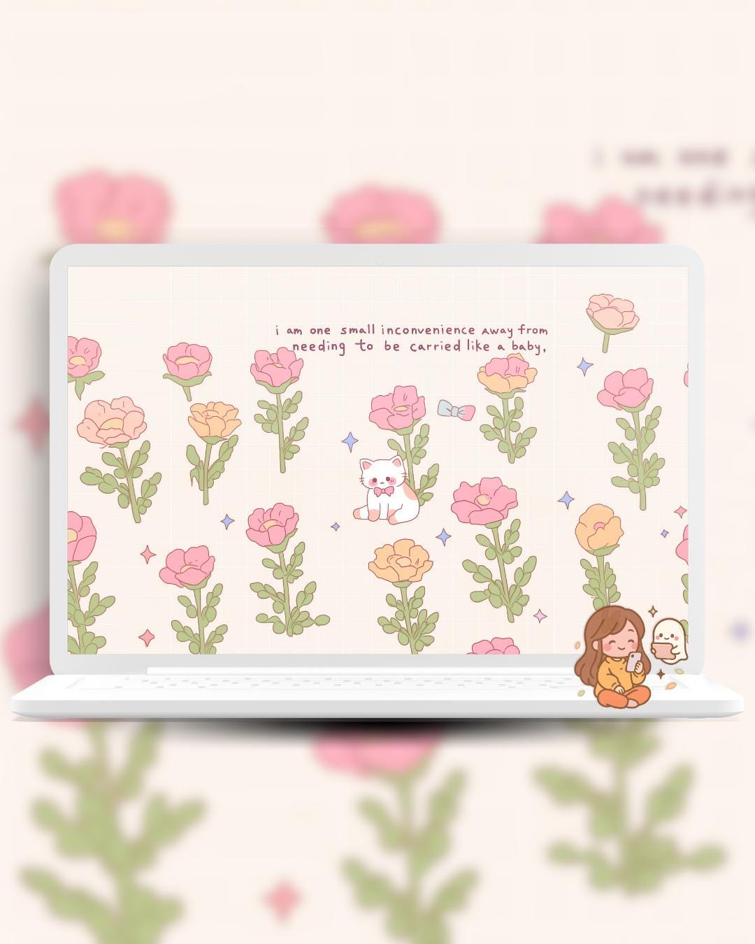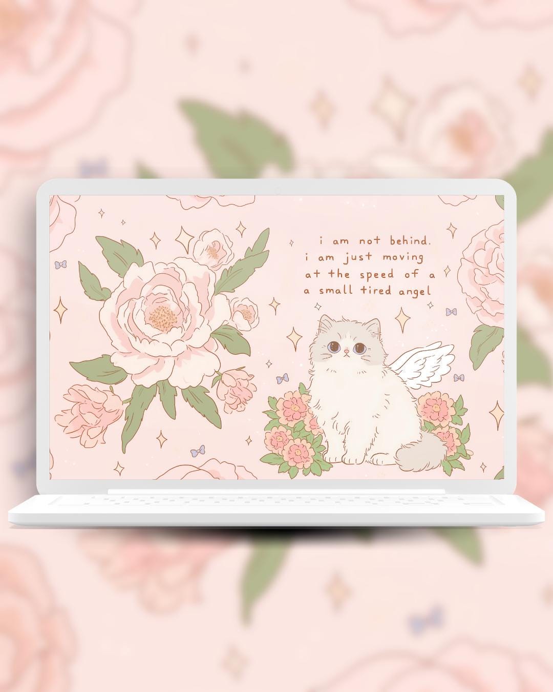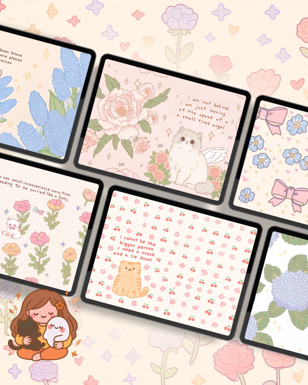 Kawaii spring quotes cats Wallpaper: Pastel Pink Desktop & Phone Backgrounds (Digital Download)