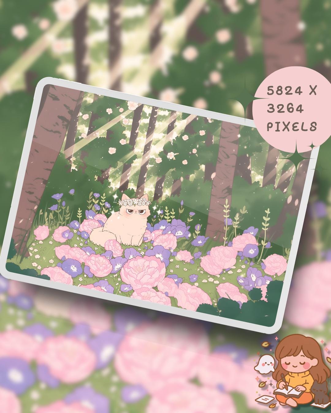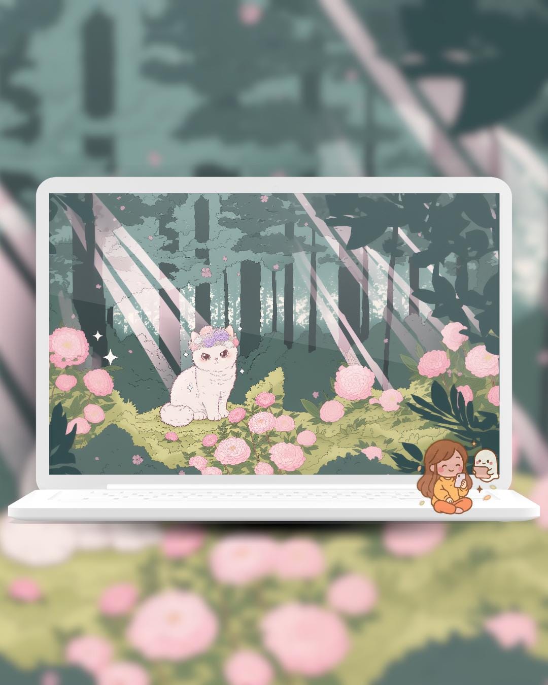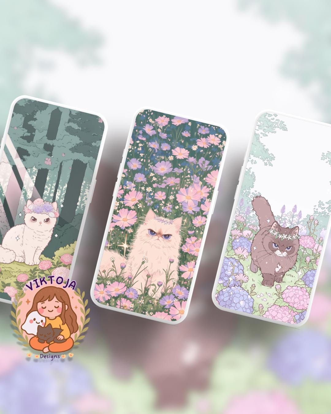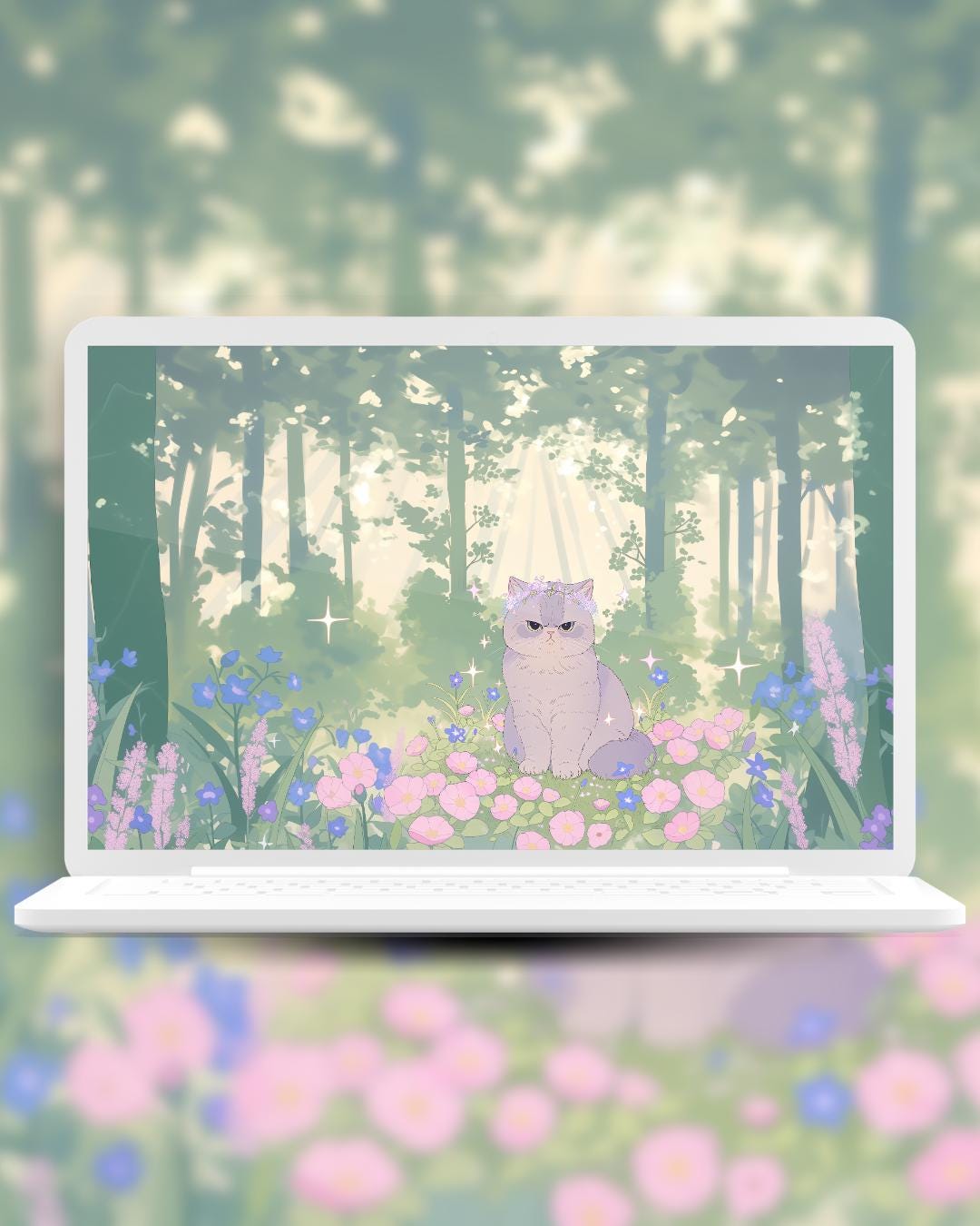 Angry Spring Cats Kawaii Wallpaper: Pastel Pink Desktop & Phone Backgrounds (Digital Download)