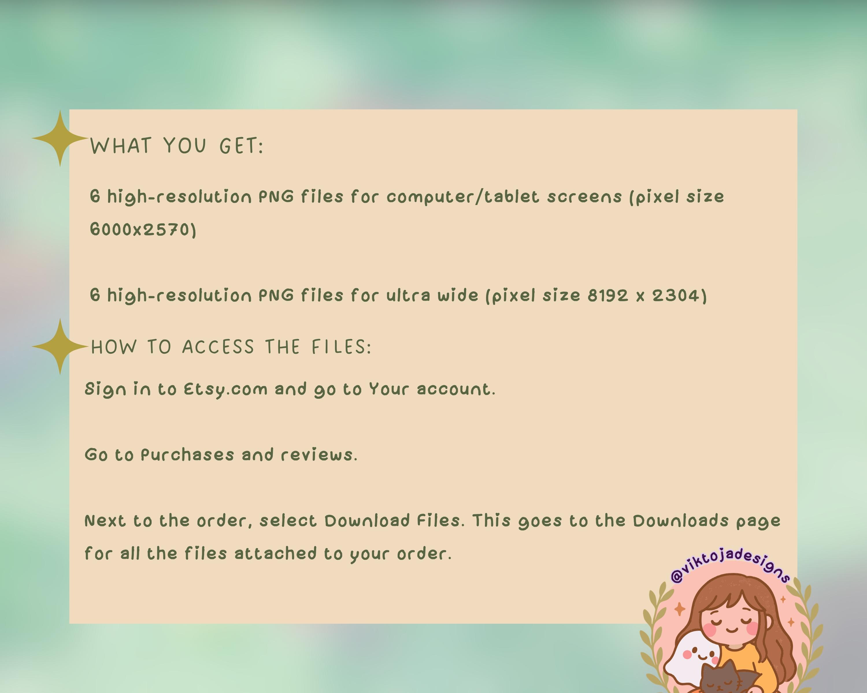 Once you’ve made your purchase, it’s super easy to download all 12 high-res wallpapers 📥. Just sign into your Etsy account 🛒, go to “Purchases and Reviews,” and hit “Download Files” next to your order. Your new screen art will be ready to enjoy in no time! 🎨🖥️